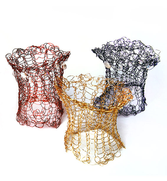 Welcome to my world of wire! I use Argentium sterling silver, 14k gold-filled, and high quality Parawire to create whimsical clothing and accessories adorned with semi-precious stones and Swarovski crystals.